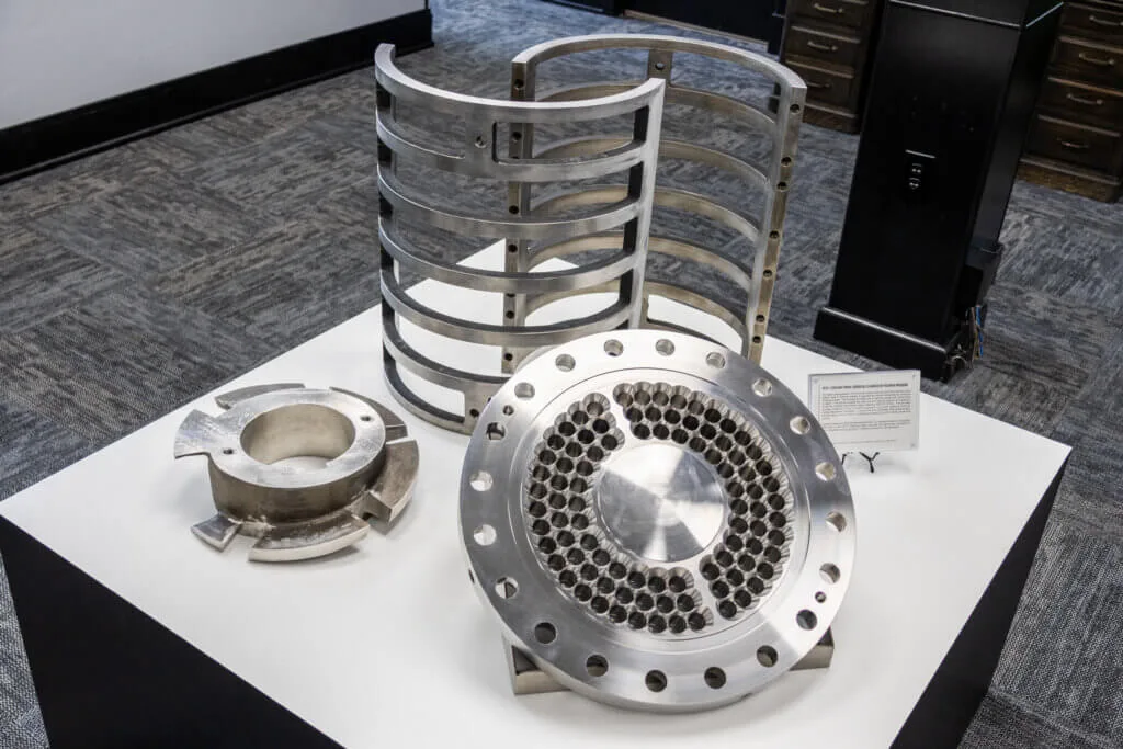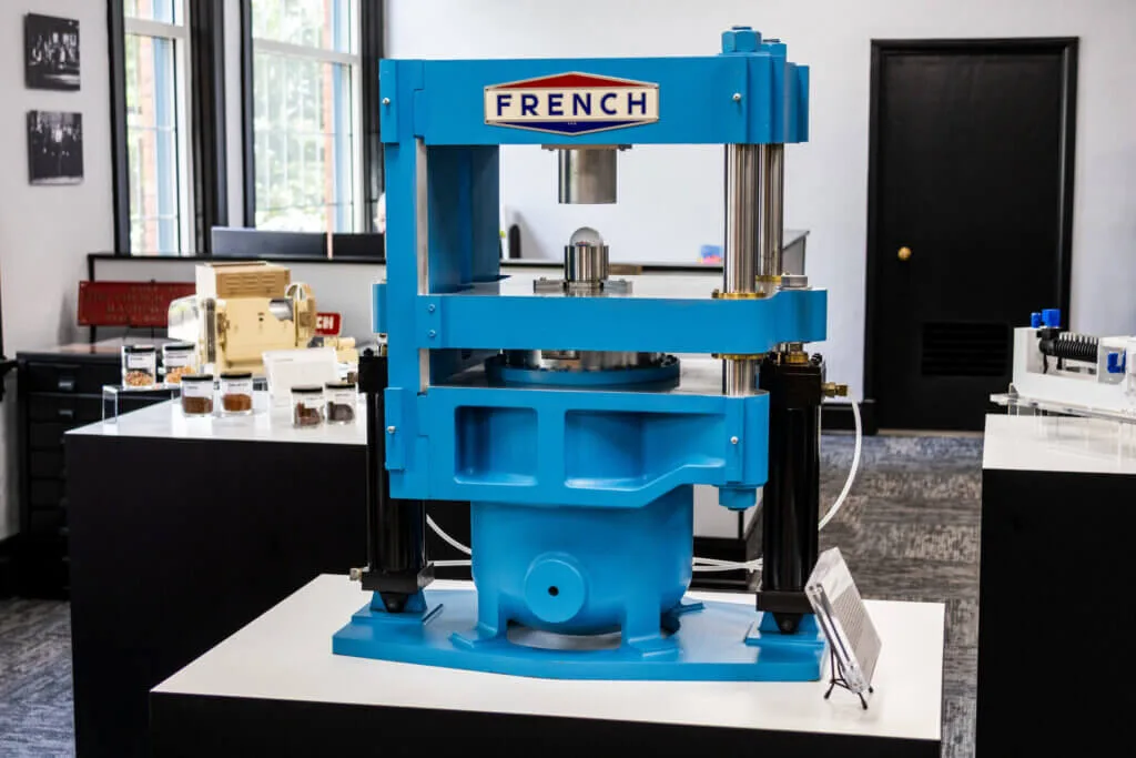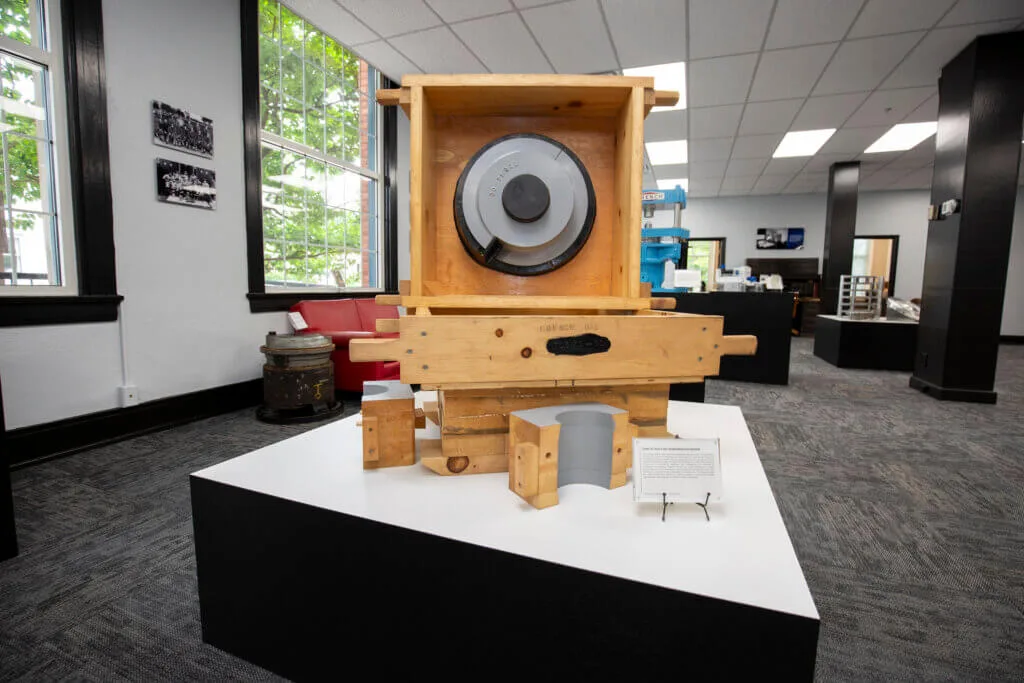 The polymer department at The French Oil Mill Machinery Company represents decades of development in the field of polymer and synthetic rubber processing. French began designing machinery for rubber manufacturing in the early 20th century and has continually adapted to new materials and technologies ever since. This department’s work includes the design and manufacture of rubber mixers and hydraulic presses used to shape, mold, and dewater a range of polymer products. From tire components and gaskets to industrial seals and specialty rubber goods, the equipment developed here is built to withstand high pressures, extreme temperatures, and the rigors of continuous production. This display offers insight into the mechanical innovations and material understanding that go into each piece of equipment, highlighting how essential these machines are to the products we rely on every day—from cars and airplanes to medical devices and infrastructure.